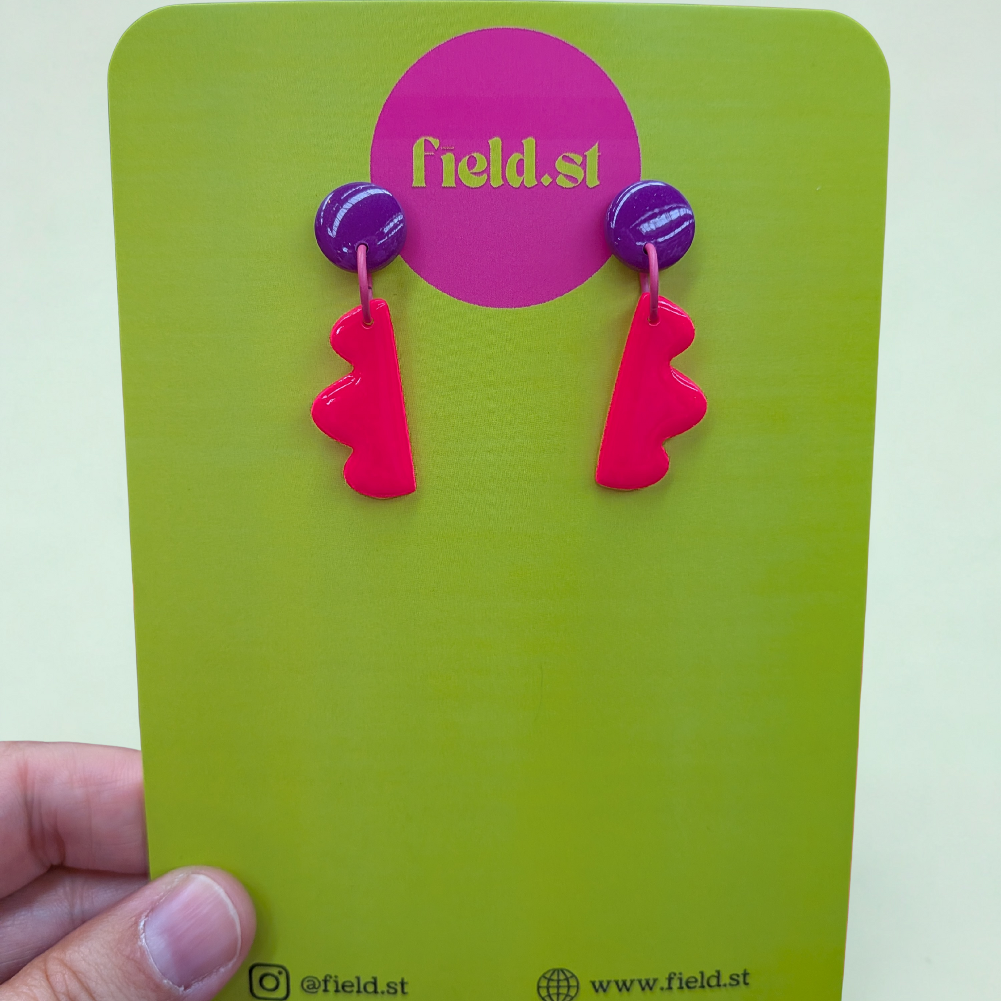 Turn up the colour! These statement earrings pair punchy neon pink with glossy eggplant purple for a look that says fun first, subtle never. Lightweight, playful, and guaranteed to catch the eye (and compliments).